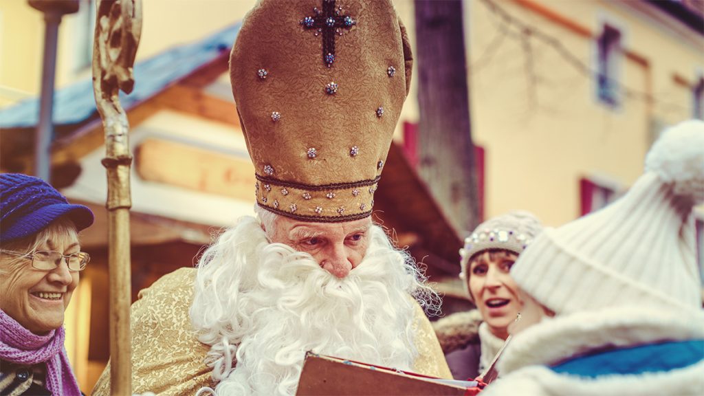 On the other hand, St. Nicholas, known as Svyaty Mykolai in Ukrainian, is a Christian saint who is venerated for his generosity and kindness. St. Nicholas history in Ukraine goes back to the 10th and 11th centuries, when Kyivan Rus Prince Volodymyr brought Christianity and St. Nicholas to Kyiv. In churches, his icons are prominently placed on the iconostas, usually next to Jesus, the Mother of God, or the patron saint of the church. His icons were found also in nearly every home In Ukrainian tradition, St. Nicholas Day is celebrated on December 19th, and children receive small gifts and treats in commemoration of his deeds. St. Nicholas is often depicted as a bishop with a white beard, wearing a red robe and carrying a staff or bishop’s crook.